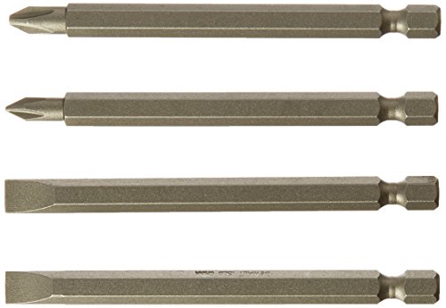 - Set Includes: Four 3-1/2" Bits, One #8 Flat, One #10 Flat, One #1 Phillips and One #2 Phillips